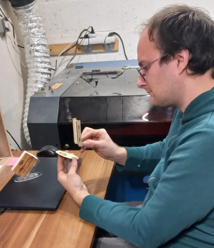Nous travaillons principalement le bois, notre matière phare, mais également d'autres matériaux tels que le métal et le cuir, en fonction des besoins et des attentes de nos clients.